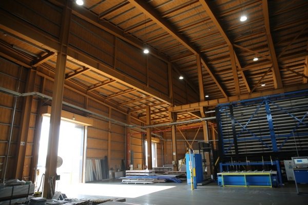 내부로 들어가자 용접이 진행되고 불꽃이 튀는 철강 가공장을 기대했던 것과는 달리 여러 대의 로봇팔과 자동화 장치들이 자리 잡고 있었다. 특히 철재를 구부리는 로봇팔 밑에는 긴 판자가 부착됐다. 그 밑에 있는 여러 자판 같은 기계장치들이 철재를 한 번에 다양한 모양으로 구부릴 수 있었다. 내장재 또한 럭스틸로 시공돼 직접 만져보기 전까지 나무 소재로 보였다.