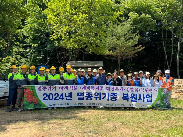 지난 2017년에는 원주지방환경청, 강원도 자연환경연구원, 한라시멘트간 '석회석 광산의 생태계 회복을 위한 멸종위기종 복원 삼자협약'을 체결해 석회석 광산복원지역 약 1만5000㎡에 2021년까지 석회암 지대에서 서식할 수 있는 날개하늘나리 등 멸종위기 야생식물을 포함한 다양한 식물을 선별 식재했다.
