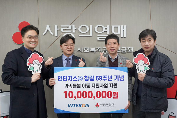 이날 전달식에는 권광용 인터지스 경영전략본부장, 박선욱 부산사랑의열매 사무처장, 김종화 인터지스 총무팀장 등이 참석했다.