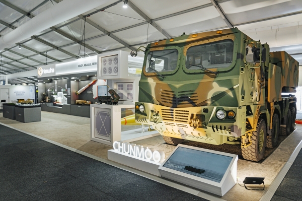 한화에어로스페이스는 폴란드군의 호평을 받은 천무 다연장 로켓 실물을 전시한다. 천무는 적 장사정포 사정권 밖에서 정밀 타격이 가능한 차세대 자주형 화력 시스템으로, 유도탄에는 위성항법(GPS)·관성항법(INS) 복합항법장치가 탑재돼 정확한 타격 성능을 자랑한다.