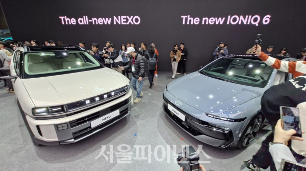 [서울파이낸스 문영재 기자] 현대자동차는 3일 경기 고양 킨텍스에서 열린 '2025 서울모빌리티쇼'에서 신형 수소전기차(FCEV) '디 올 뉴 넥쏘(The All-New NEXO)'와 신형 전기차 '더 뉴 아이오닉 6(The New IONIQ 6)'를 공개했다.