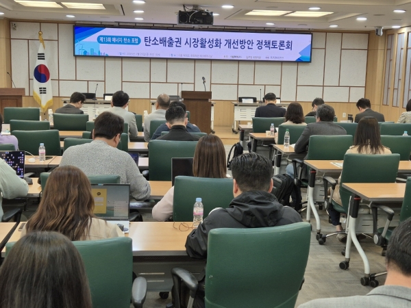 이번 행사는 '탄소배출권 시장 활성화 개선방안 정책토론회' 주제로 열렸으며, 김주영 국회의원(환경노동위원회 간사)과 한국금융공학회(회장 조훈)와 공동 주최로 진행됐다.