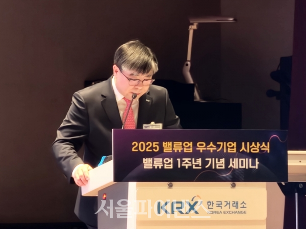 김정영 한국거래소 경영지원본부 상무는 27일 진행된 밸류업 1주년 기념 세미나에서 "공시 기업의 평균 주가 수익률은 2024년 기준으로 4.5%로 공시를 하지 않은 기업의 수익률인 -16.9%와 비교해 21%p 이상 높은 수익률을 기록했다"고 말했다.