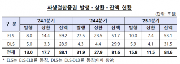 3일 금융감독원이 발표한 '2025년 1분기 중 증권회사 파생결합증권 발행·운용 현황'에 따르면 올해 1분기 파생결합증권 발행액은 15조8000억원으로 전년 동기(13조원) 대비 21.5%(2조8000억원) 증가했다.